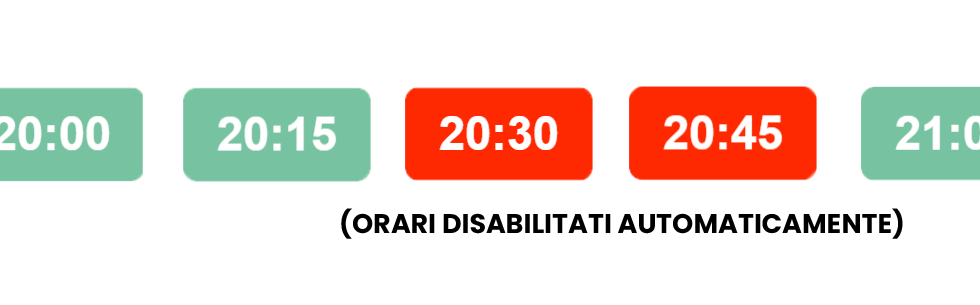 Puoi impostare quanti ordini vuoi ricevere in ogni fascia oraria ed il sistema farà tutto da solo, disabiliterà per te le fasce orarie a seconda della tua disponibilità in cucina ed il cliente potrà selezionare solo le fasce orarie negli orari che puoi rispettare.